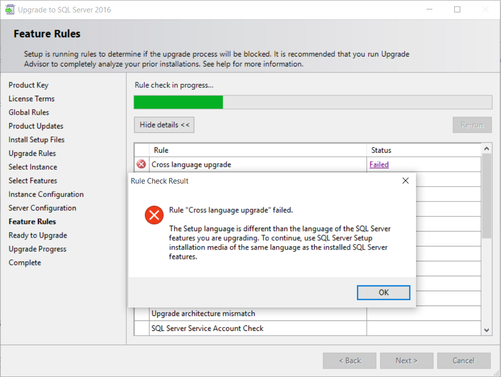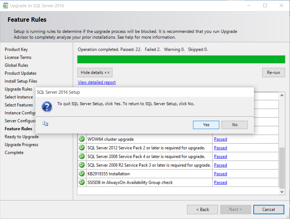 Ora è possibile effettuare l’installazione di SQL Server 2016 senza altri problemi: i database ovviamente andranno tutti nuovamente ricollegati.