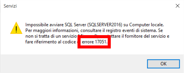 SQLServer 2016 non si avvia ... ecco uno dei perchè
